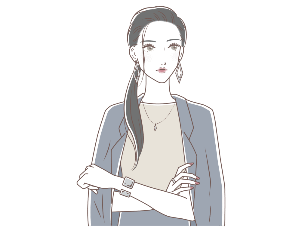- 似合うファッション:シャープなデザイン・モノトーン・パンツスタイル